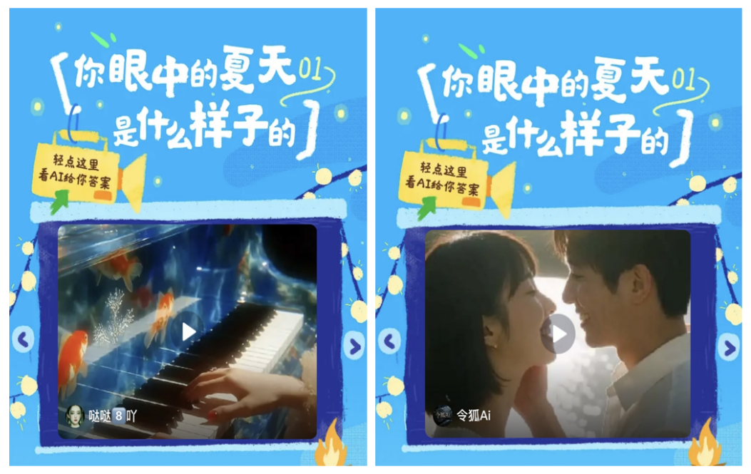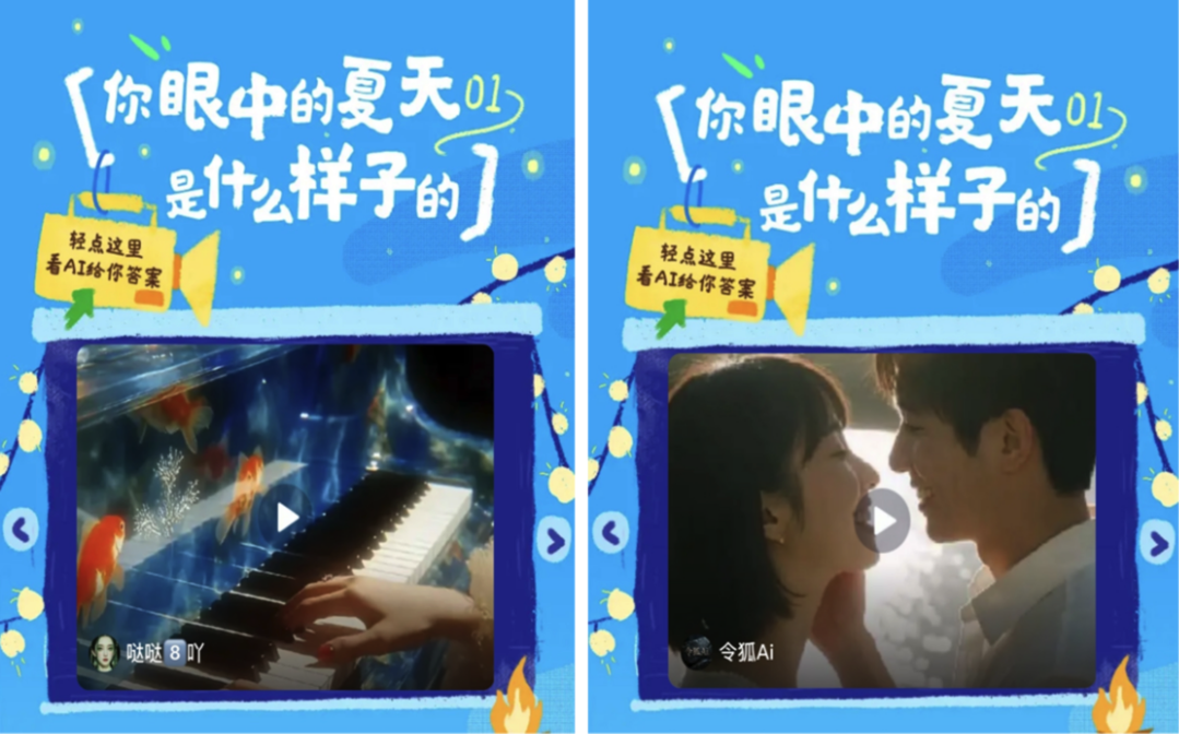 在线上,「尽情一夏,烟火人间」一方面联动即梦AI创作者打造「烟火一夏」系列宣传片,将抽象的“夏日情绪”变成直观的画面,既清晰点出红、黄、蓝三原色,又精准戳中人们对夏天的情感共鸣,让用户从沉浸代入“眼中的夏天”到主动思考“期待的夏天”,为夏日新趋势进行预热。