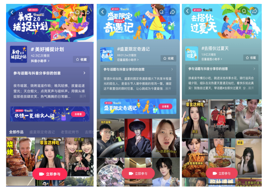 自上线以来,主话题#美好捕捉计划 热度一路飙升,总播放量更是达到42.3亿次,子话题#盛夏限定奇遇记、#去搭伙过夏天热度分别达6631.2万、1.9亿次。