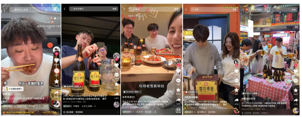 定点沈阳、成都、杭州、济南、洛阳五大特色城市,携手@李炮儿、@弋优、@冬冬和37、@粘苞米糊糊、@酱油白米饭5位本地头部达人化身“主烤官”,将老雪自然植入“城市烟火气”的具体情境中,解码情绪消费。