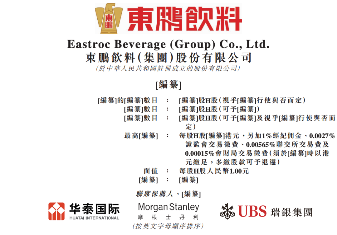 据港交所文件,10月9日,东鹏饮料(集团)股份有限公司向港交所提交上市申请书,联席保荐人为华泰国际、摩根士丹利、瑞银集团。