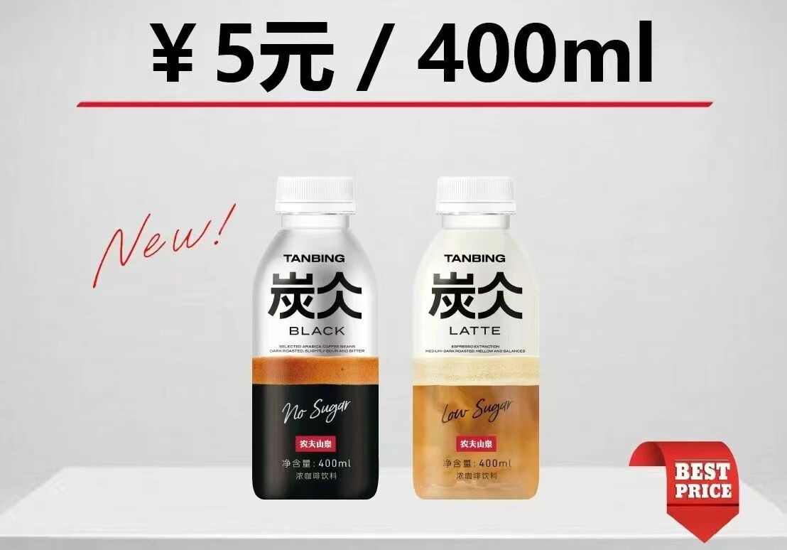 近期,农夫山泉在咖啡市场继续深耕,即将推出炭仌“浓咖啡”系列。据悉,该新品将于下个月上市,400ml售价5元。
