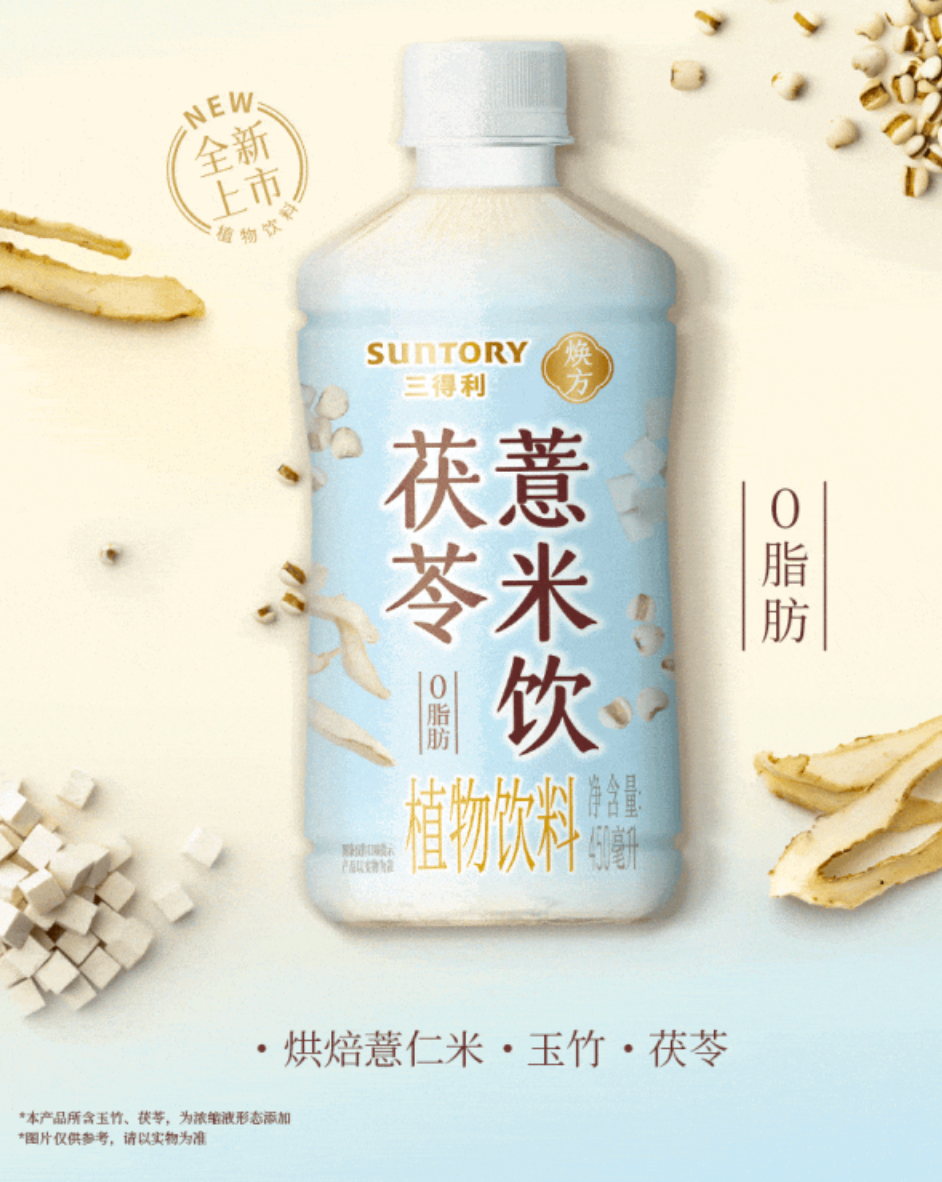 近日,三得利饮料宣布焕方系列推出茯苓薏米饮,口味灵感据称源自于传统古方“茯苓薏米玉竹饮”。