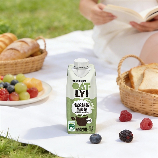 OATLY精准把握市场风口,推出特浓抹茶燕麦奶新品,特别选用来自贵州铜仁的高原抹茶,将东方茶韵与北欧植物基工艺深度融合,带来一份兼具质感、风味与健康属性的创新之作。