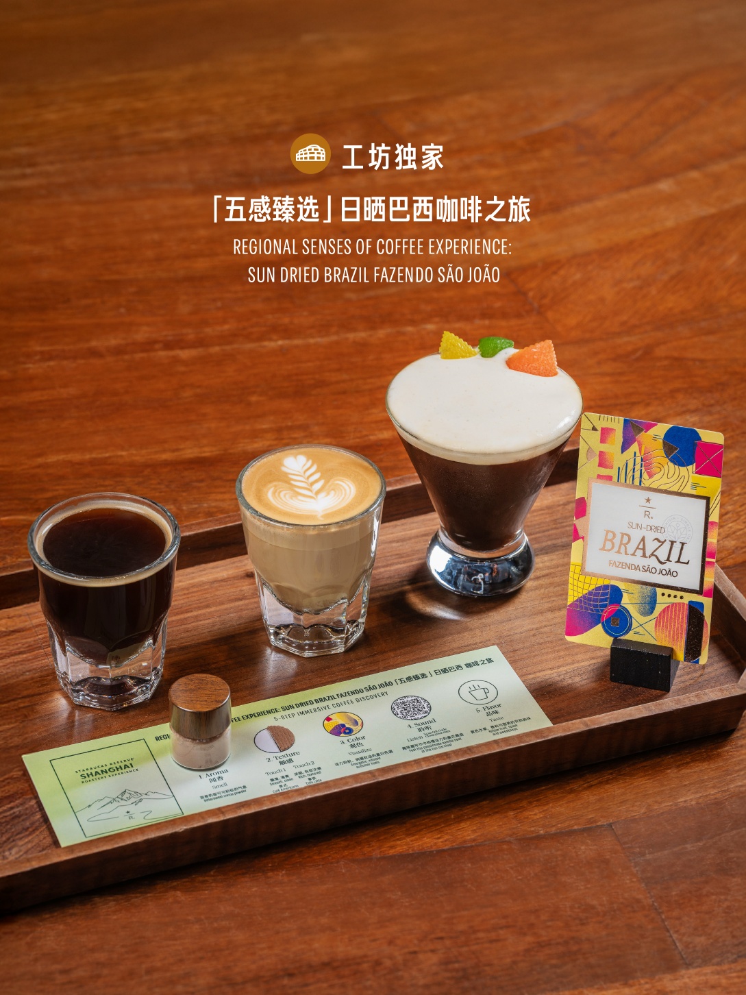 对臻选咖啡情有独钟的咖啡爱好者则可以体验工坊独家五感臻选日晒巴西咖啡之旅,来自星巴克臻选™巴西圣若昂庄园咖啡豆将热情活力浓缩于咖啡之中,营造出动感澎湃的桑巴嘉年华氛围感,开启一场融合闻、触、视、听、味的沉浸式咖啡旅程。或者体验一场典藏级咖啡探索,从星巴克臻选™萨尔瓦多蒙特卡洛斯庄园瑰夏品种开始,跟随咖啡大师的引领,一同探秘火山之巅名庄瑰夏,领略其“风土凝香”、解锁“匠心定味”、品鉴“瑰香赋韵”,更有限定伴手礼相随。